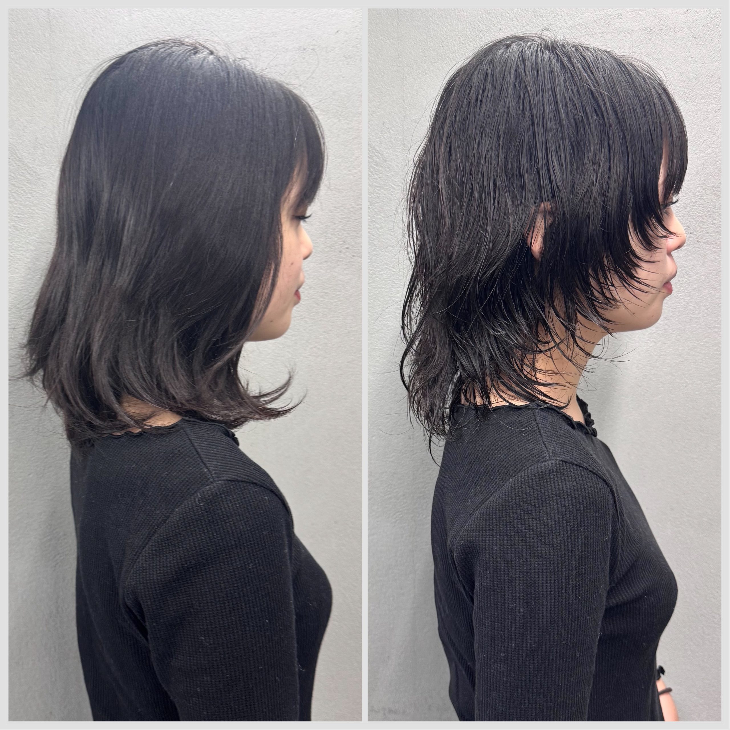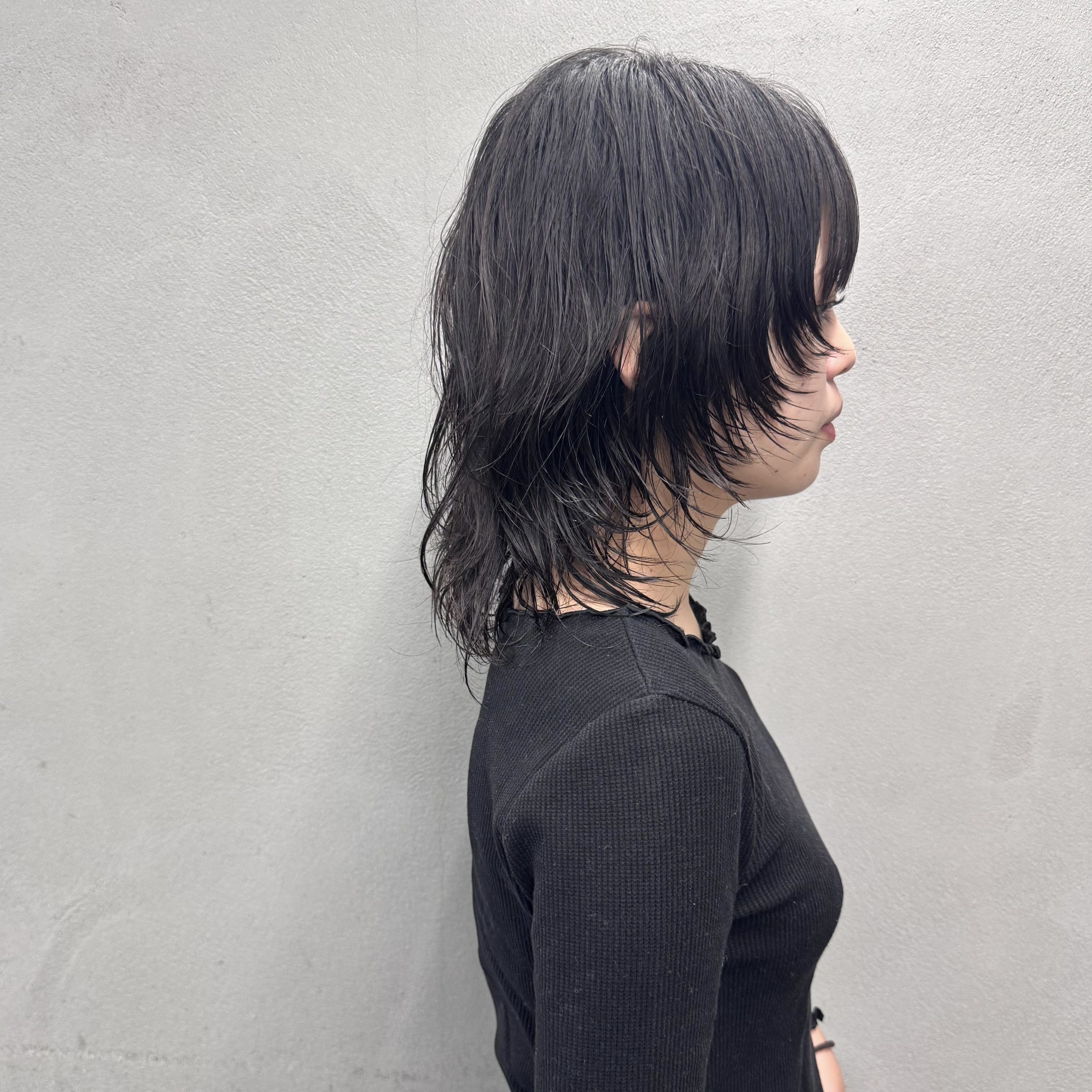 パーマの残りを活かした黒髪レイヤー