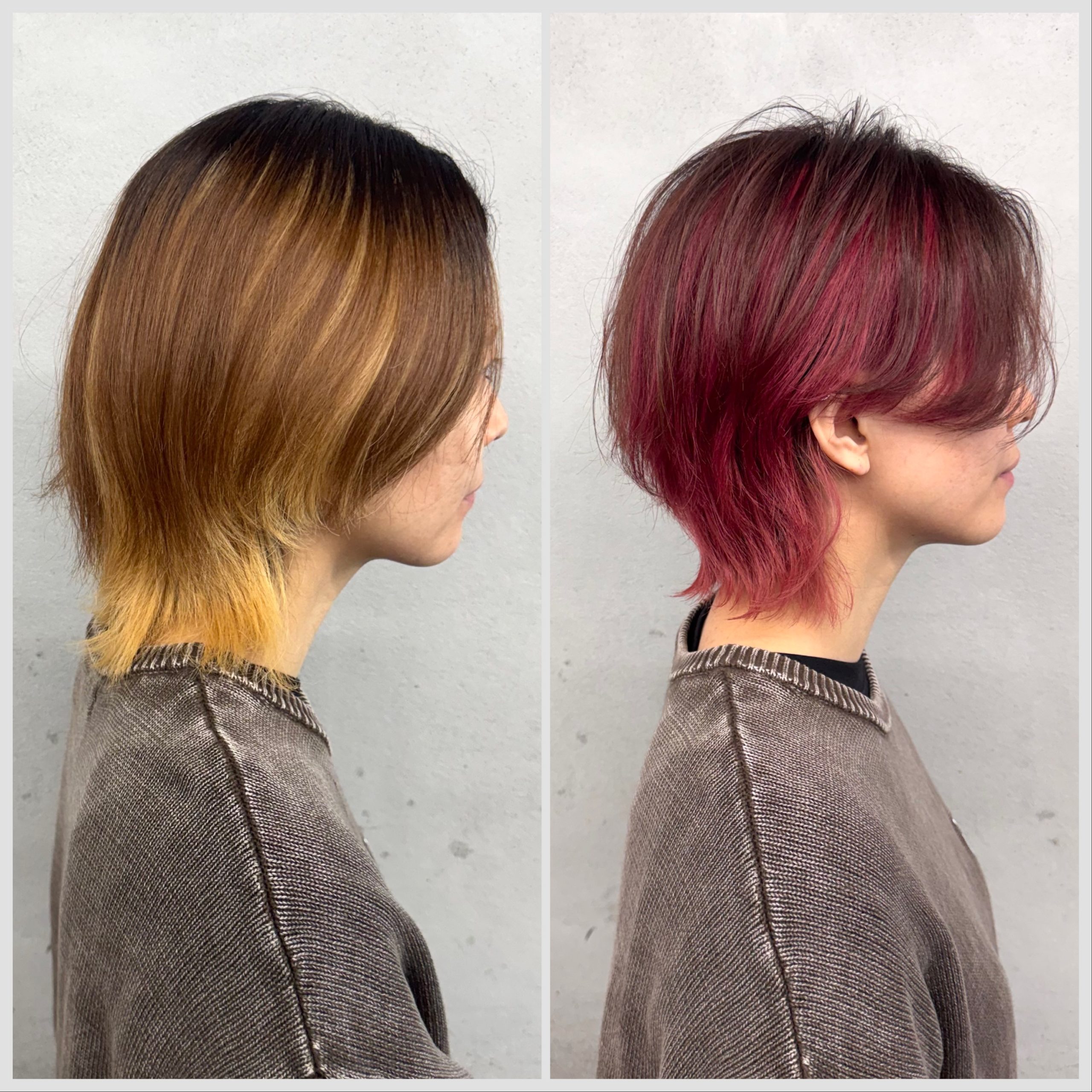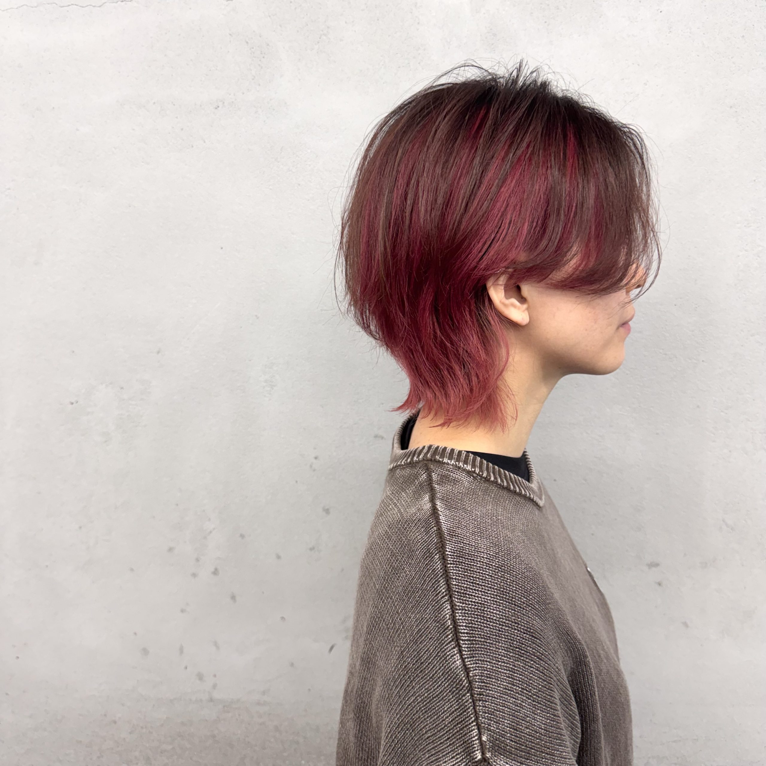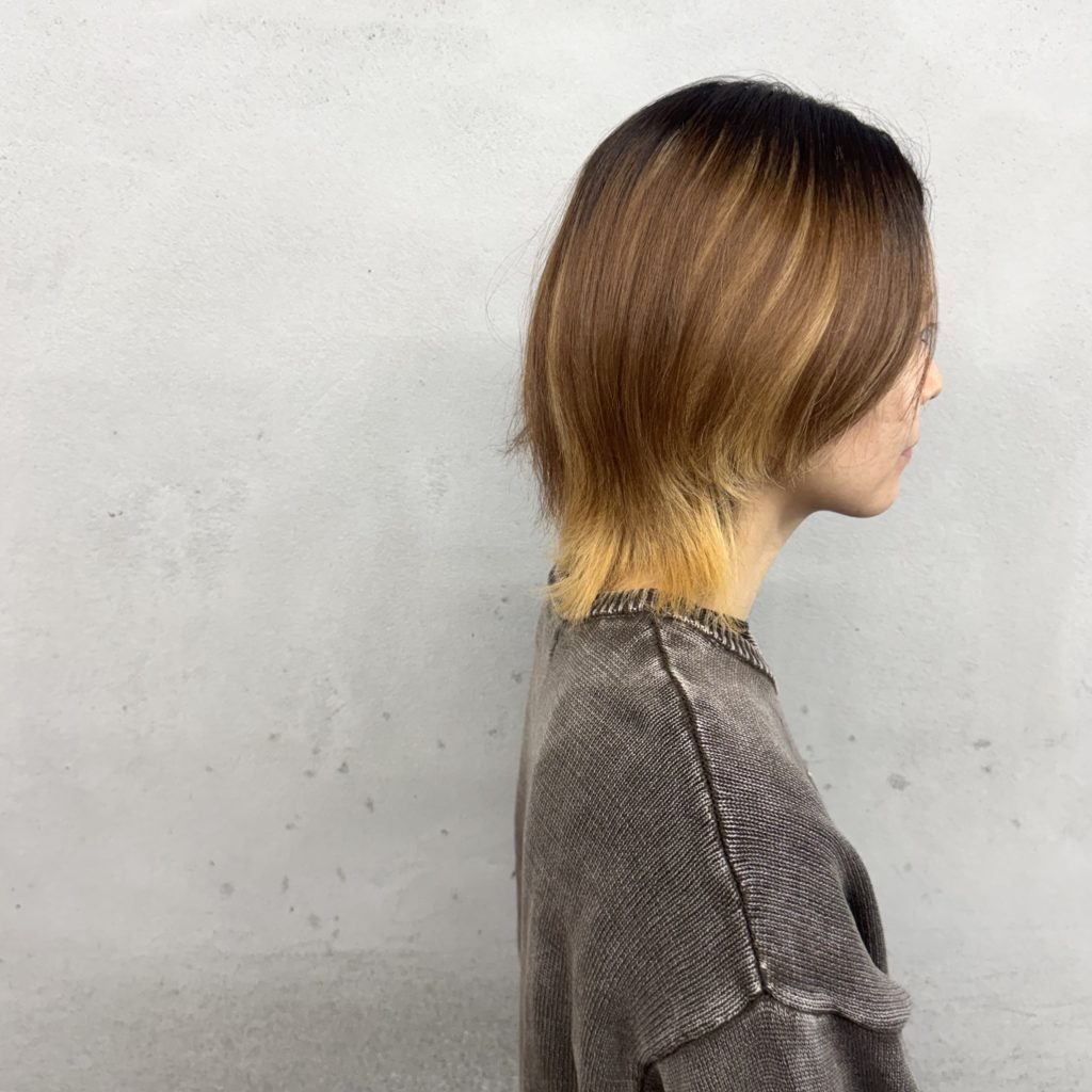 センターパートのショートウルフ